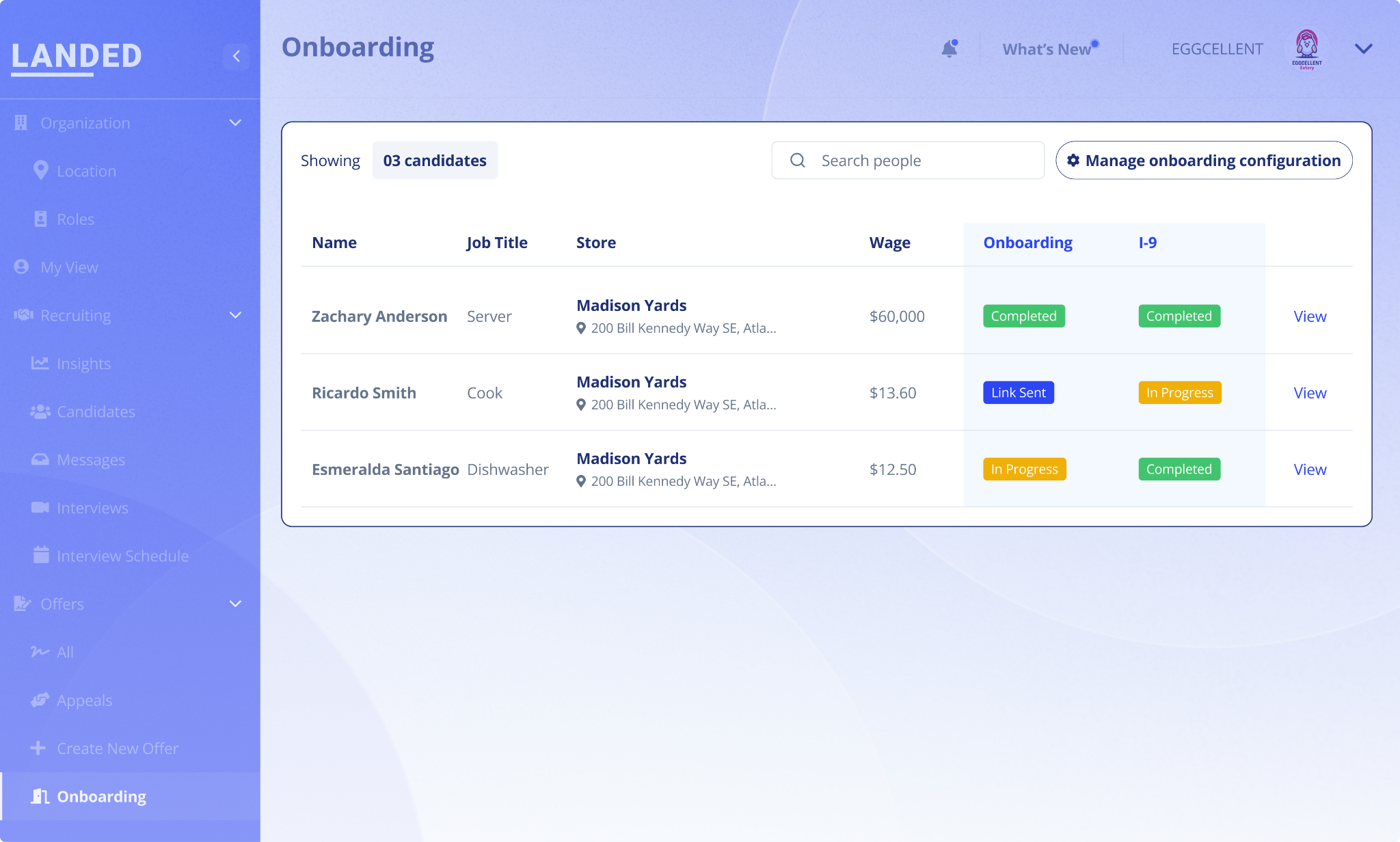 Together with automated candidate sourcing, screening, and engagement, offer management, and now automated onboarding, LANDED creates a seamless experience that turns applications into productive team members faster than ever.