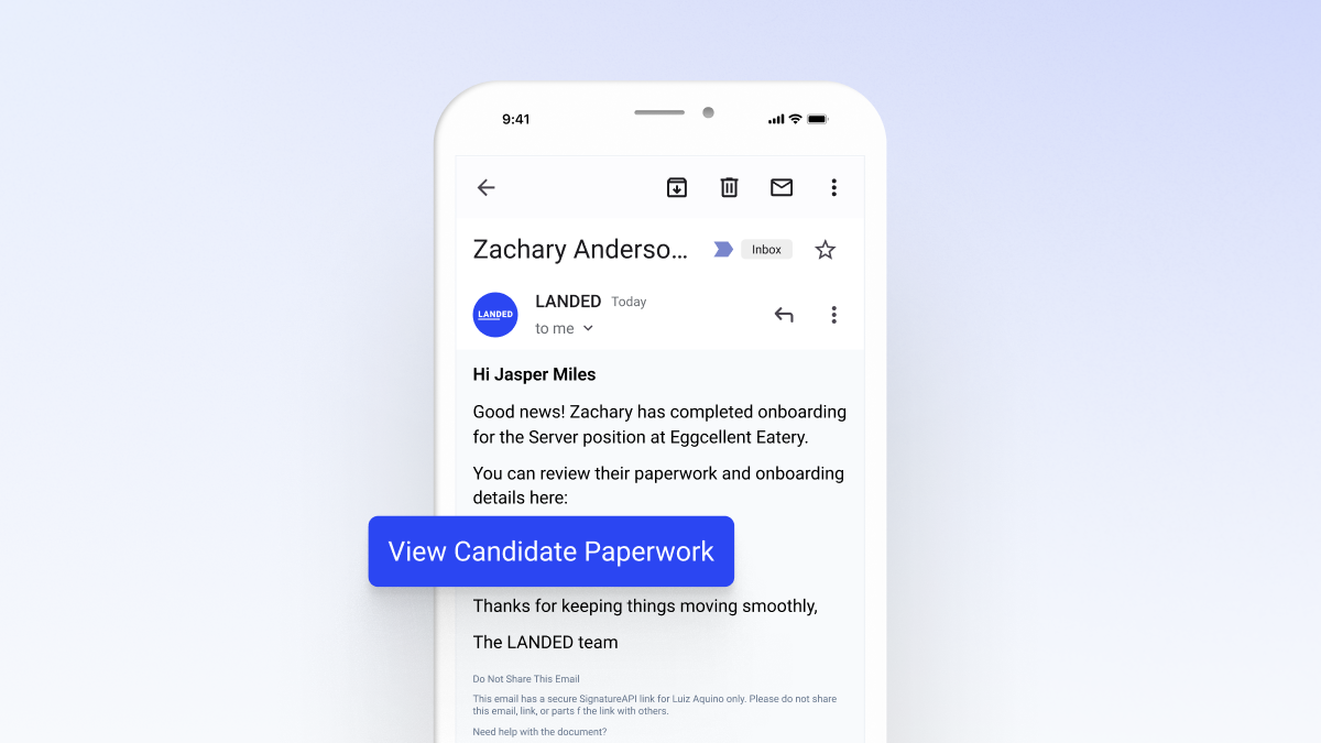 LANDED Onboarding is available now. To learn more and see how it integrates with your hiring workflow, reach out to our team at partnerships@gotlanded.com.